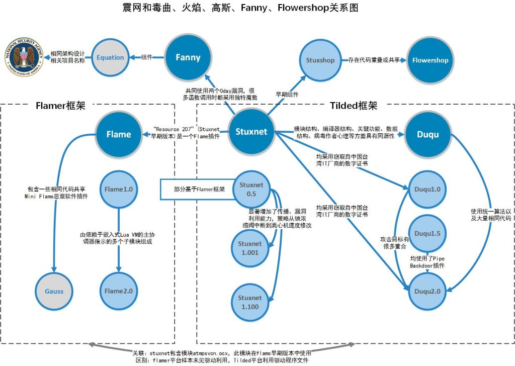 Our determination of the origin of the “Quantum Penetration” samples is based on accumulated findings from long-term tracking and analysis of the A2PT attack group. Since 2005, the U.S. has progressively advanced multiple generations of large-scale advanced malware projects. Both Kaspersky and Antiy have conducted continuous follow-up analysis on these projects. Kaspersky collectively identified the first generation as the Flamer framework, from which the “Flame” 1.0, “Flame” 2.0, and “Gauss” worms originated, along with portions of the “Stuxnet” 0.5x version code. Generation II is the Tilded framework, upon which most of Stuxnet and multiple versions of Duqu are based. This aligns with Antiy’s analysis at the time. In its follow-up analysis of the Flame worm, Antiy noted that although Flame was discovered later than Stuxnet, it was actually an earlier operation sample. Antiy further speculated that Flame was extensively deployed for reconnaissance operations targeting the Middle East, representing the CNE (Cyber National Enemy) phase; while Stuxnet represented the final CNA (Cyber Network Attack) execution phase. Antiy also noted that the valve pressure cascade version of Stuxnet (version 0.50), though disclosed later, was deployed prior to the centrifuge speed manipulation version (version 1.x), among other observations.