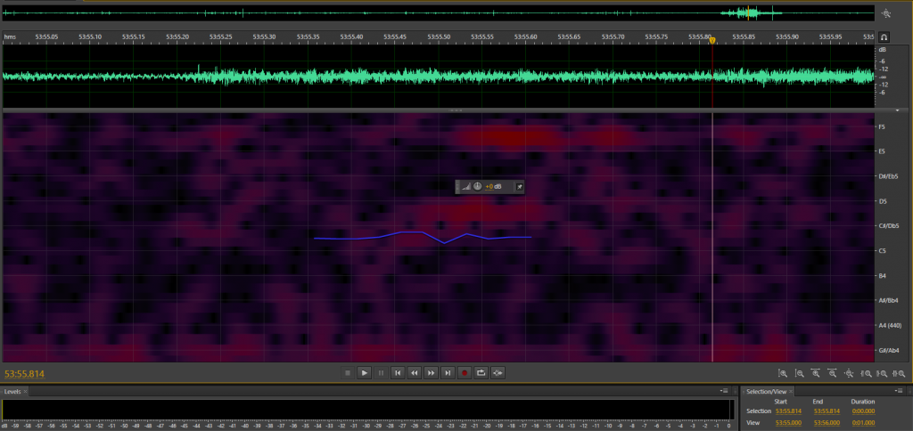 Figure 3-8 shows the waveform spectrum of a normal audio recording. Figure 3-9 displays the spectrum of the recording reproduced via triangulation. Although the normal audio sample has a higher sampling rate and bit depth than the triangulation recording, within the same timeframe (1 second), the triangulation recording contains more data volume, with waveform changes appearing denser than those in the normal audio recording.