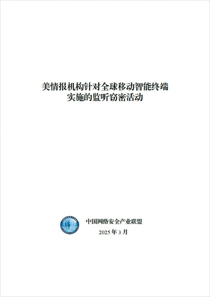 Chapter 4 of this report introduces the report released by the China Cybersecurity Industry Alliance released on March 25, 2025:《Mobile Cyberattacks Conducted by US Intelligence Agencies》[8].