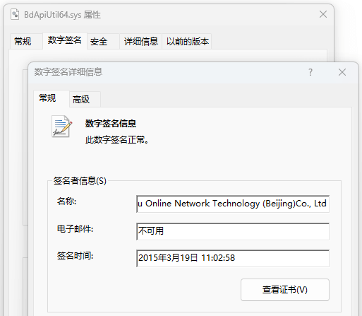Xiaoh. sys is a malicious driver file that contains an expired digital signature of a company. The attacker also signs the drive file with an unrevoked certificate issued before July 29, 2015, so that the drive file can run properly through signature verification.