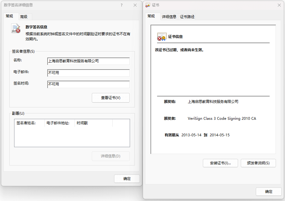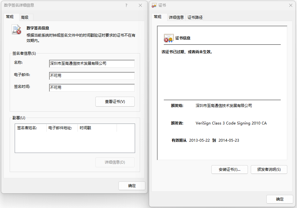 Figure 3-32 Expired Digital Signatures Used by XiaoH. sys