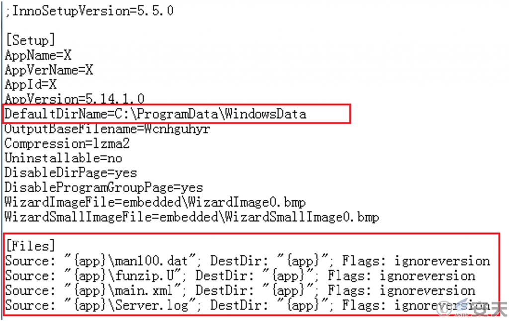 The sample is packaged with InnoSetup, disguised as a WPS installer, and runs to release multiple files from the sample to C:\ ProgramData\ Windows Data.