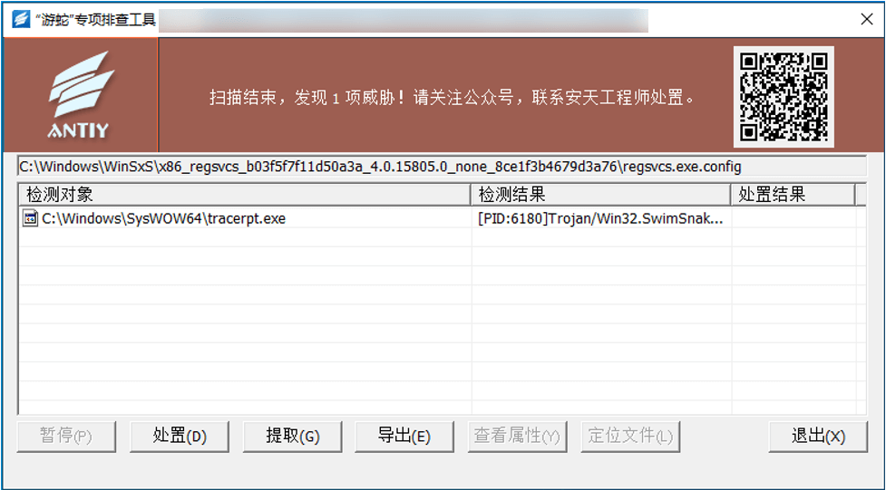 Users can download and use the “Swimming Snake” special screening tool to detect such threats on the Antiy vertical response platform (https://vs2.antiy.cn).