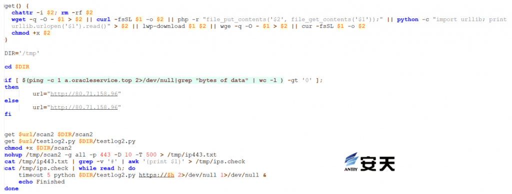 | hxxp[:]//a.oracleservice.top/scan.sh |