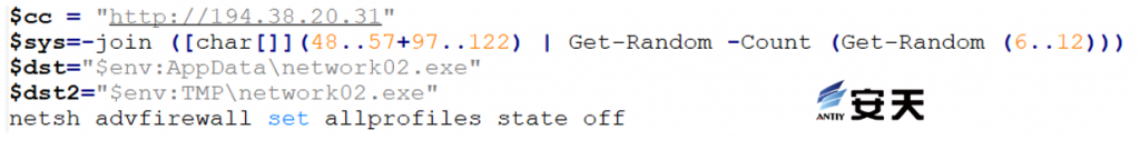 Define the Monero mining program address, save path, mining program name and other information, and disable the firewall.