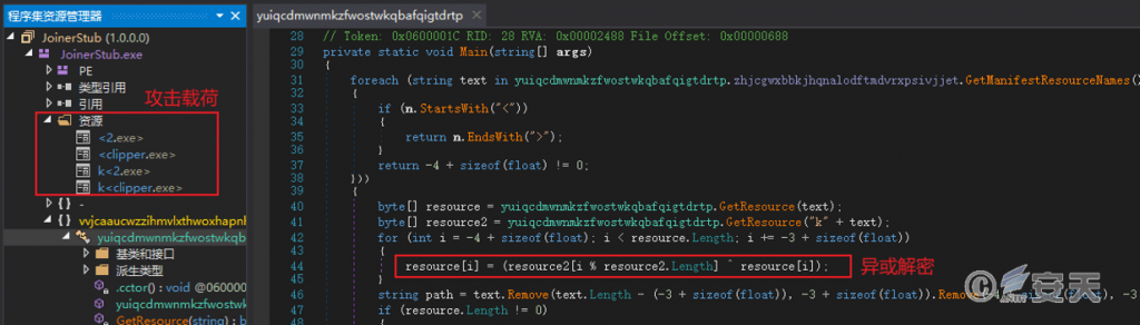 The malicious sample captured this time decrypts and releases two attack payloads through the loader, namely: a theft Trojan named Jester Stealer and a clipboard hijacker named Merlynn Clipper.
