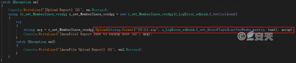 If the HTTP response fails, the file is uploaded to AnonFiles, a public anonymous file storage website. Attackers use this as an anonymous way to receive the response data, making it more difficult to trace and counterattack.