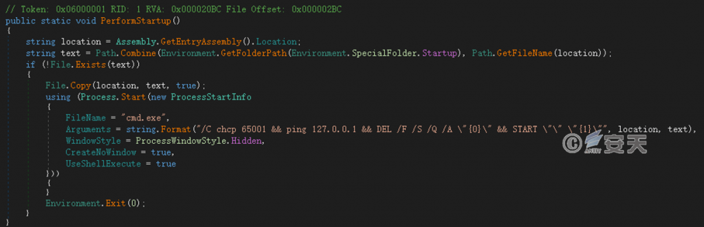 Copy itself to the startup directory to achieve self-startup, and then delete the original file.