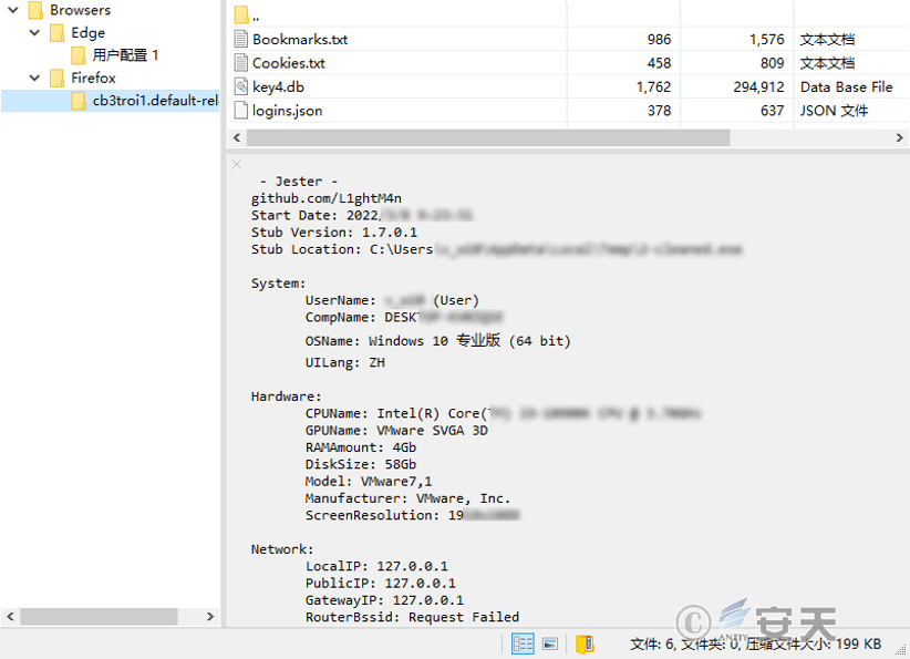 The Jester Stealer Trojan can steal the victim’s system credentials, Wi-Fi passwords, screenshots, browser-stored passwords, cookies, software data, and other important data, package them into a zip file, and then transmit them back via HTTP or Tor anonymous networks. It also supports an alternative transmission method of uploading to AnonFiles anonymous network disk.