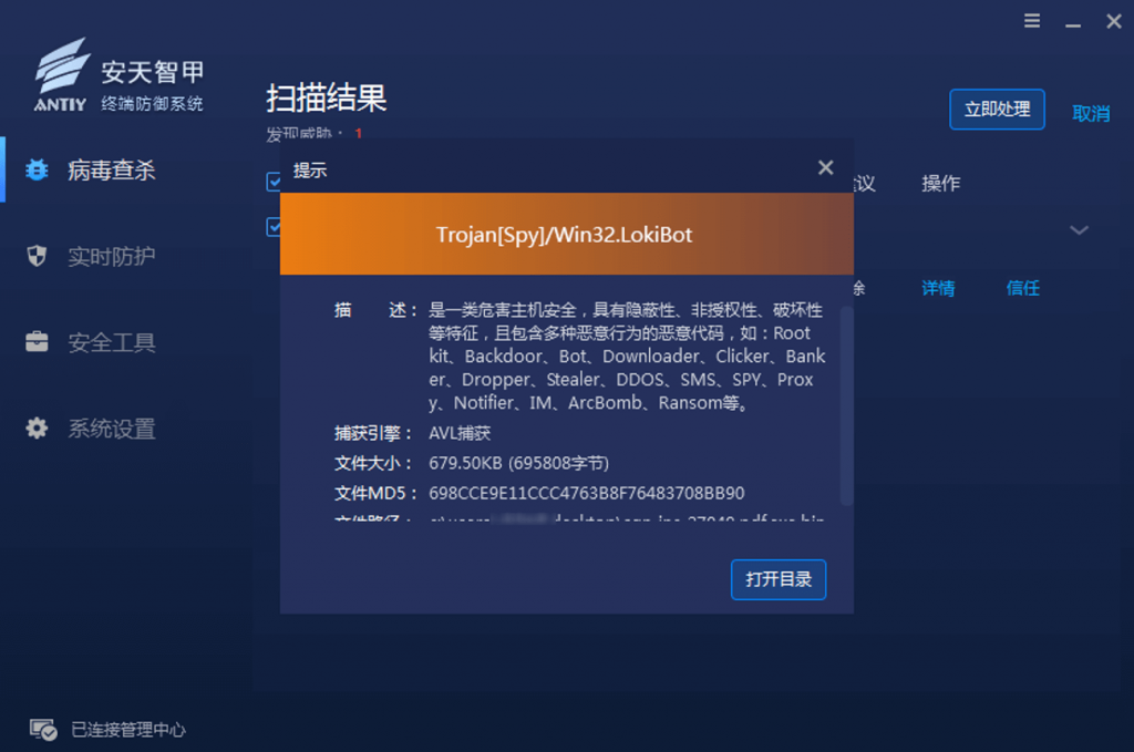 It has been proved that Antiy IEP can effectively detect and kill the secret Trojan and effectively protect the user terminal.