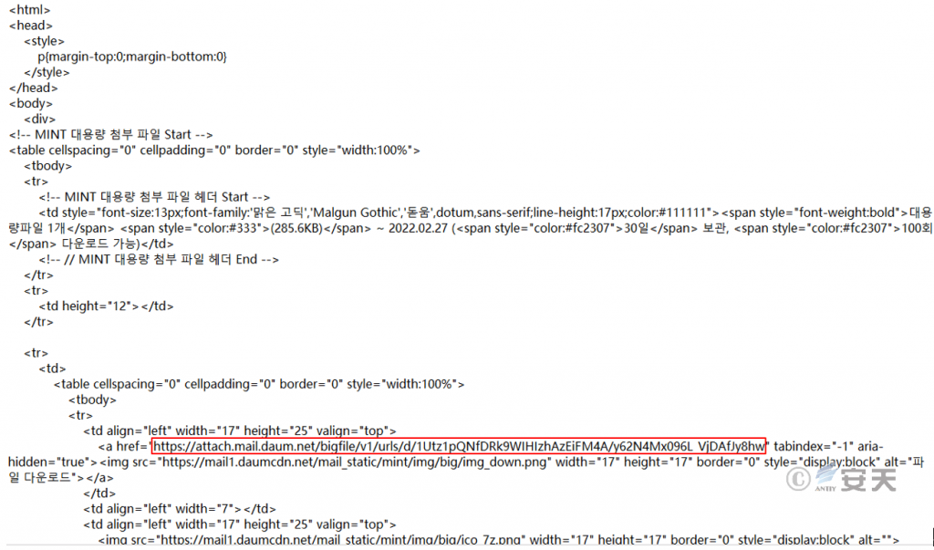 After the user clicks the attachment, he / she will download the compression package of the LokiBot secret Trojan from the designated URL, and after the decompression execution, he / she will infect the secret Trojan. The domain attach.mail.daum.net is a domain name used by a Korean mail service provider to provide email attachment download services.