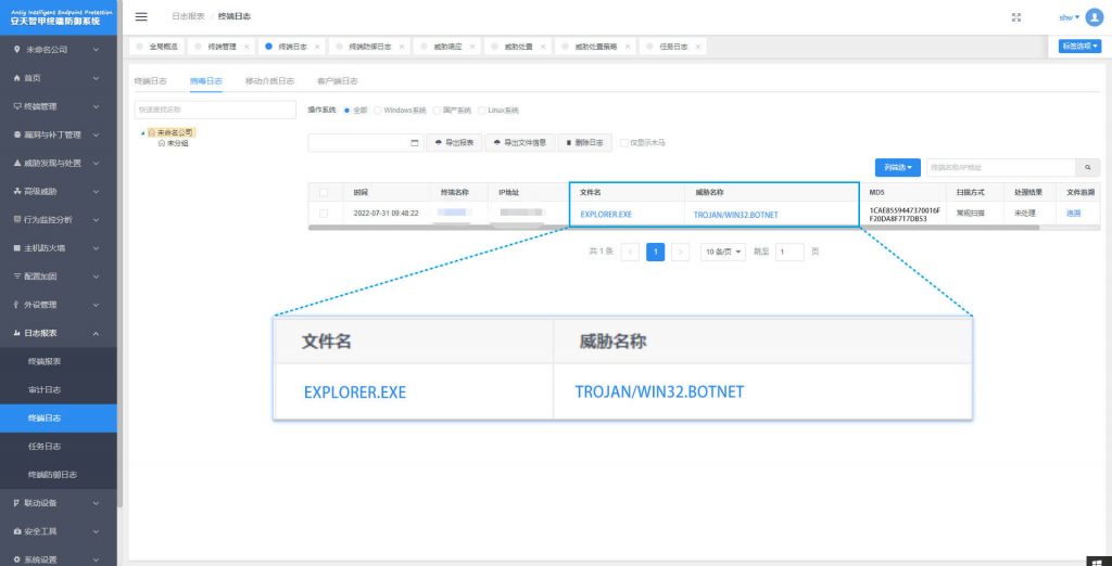 Antiy CERT will continue to track the relevant technical changes and characteristics of the hacker gang, and provide corresponding solutions. Antiy IEP not only has the functions of virus detection and killing, active defense and other functions, but also provides the capabilities of terminal control and network control, which can effectively defend against such threats and protect user data security.