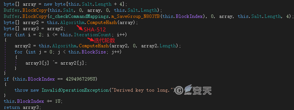 The information returned by the C2 server is encrypted by AES-256-CBC, and its AES encryption key is generated by PBKDF2 (Password-Based Key Derivation Function 2). Specifically, the security hash algorithm used in the algorithm is SHA-512. Password (Passphrase) is the hard-coded “c4d8c7f433c1e79afe4eff3a4b05c7c9” in the sample, salt value (Salt) is the user ID, and iteration rounds (Iterations) are 1000 rounds.