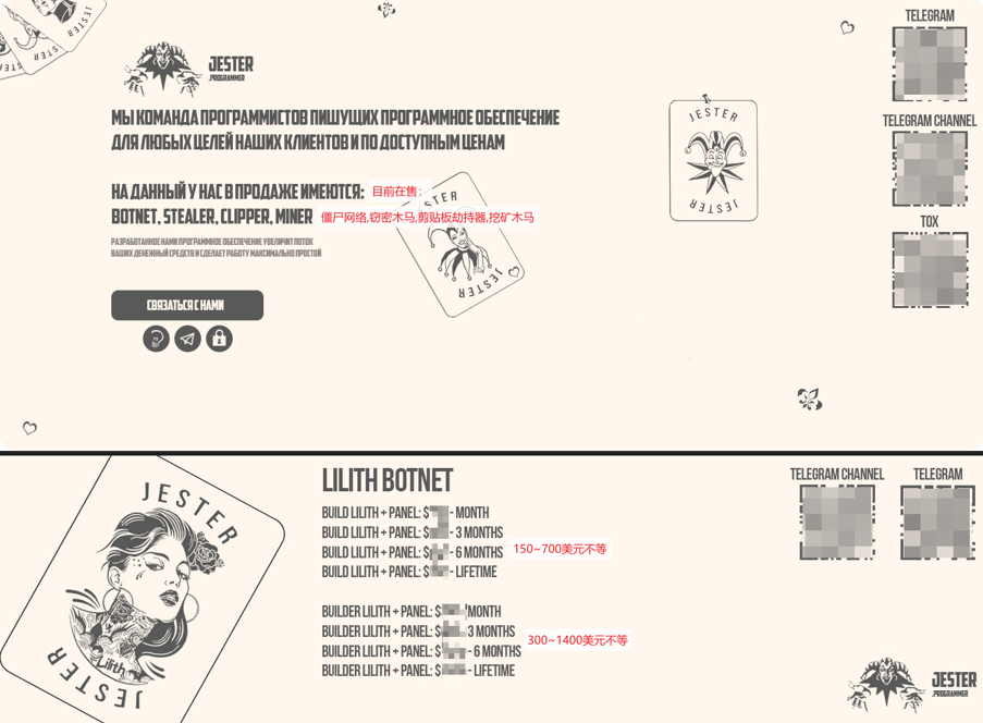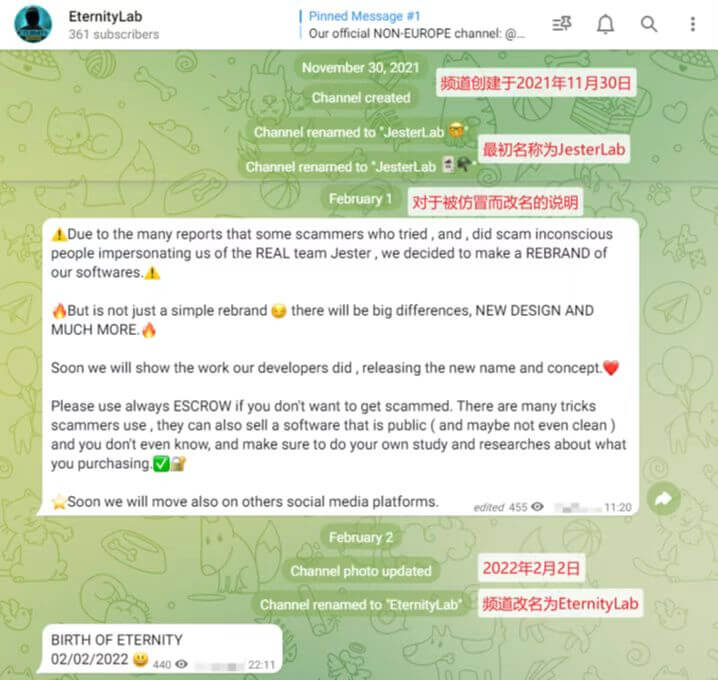 In February 2022, the Jester hacker group was renamed Eternity to continue the sale of malware and changed its operation strategy at the same time, because the Jester hacker group was blocked by several hacker forums after being impersonated by other hackers to commit fraud. So that the botnet program only includes remote control, DDoS and other functions, and other functions are purchased separately and then distributed for execution, instead of having to be purchased together.