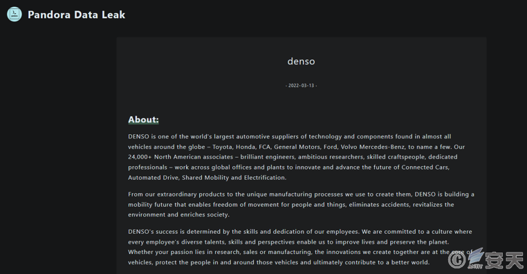 Ransomware Pandora, which appeared in February 2022, had attacked Denso on March 10 and posted the stolen information on the Tor website’s data breach platform on March 13 (around March 16, the information has been deleted).