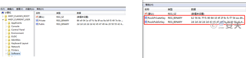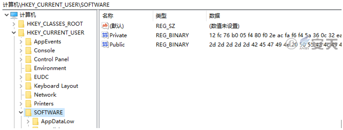 Create registry keys named Public and Private under HKEY _ CURRENT _ USER\ SOFTWARE to store public and private keys.