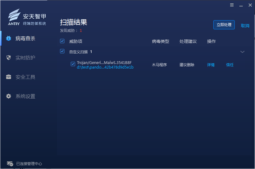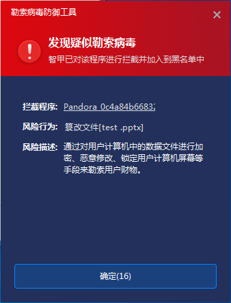 At present, Antiy IEP can realize the detection and effective protection of ransomware Pandora.