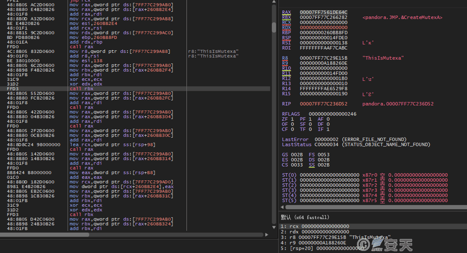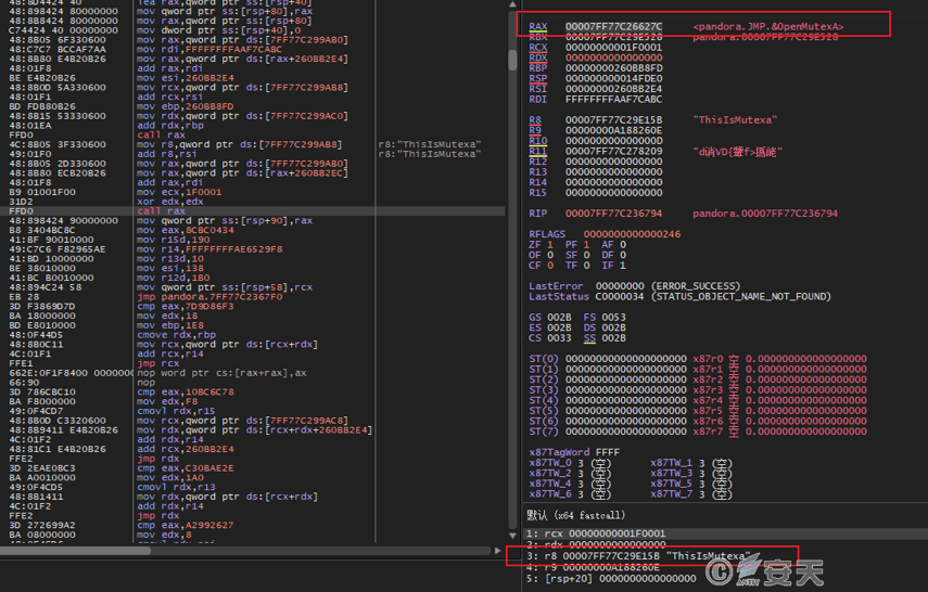 After the ransomware program is executed, first check whether there is a ThisIsMutexa in the current host, and then judge whether to continue running the program.
