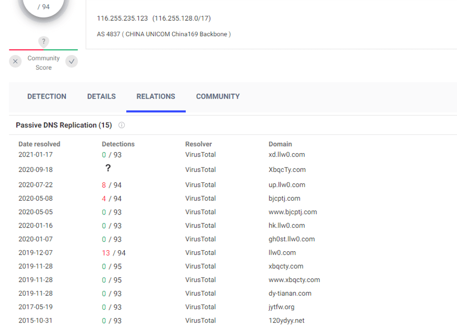 Several llw0.com subdomains have also been resolved to 116.255.235.123, and a large number of related malicious codes communicate with the IP, and the address is owned by the attacker.