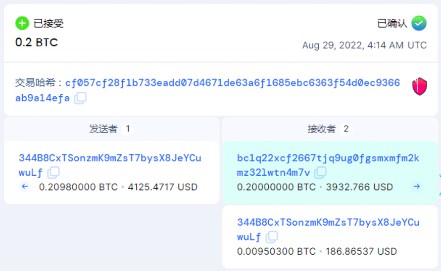 Figure 6-1 A ransom of 0.2btc has been paid by a victim