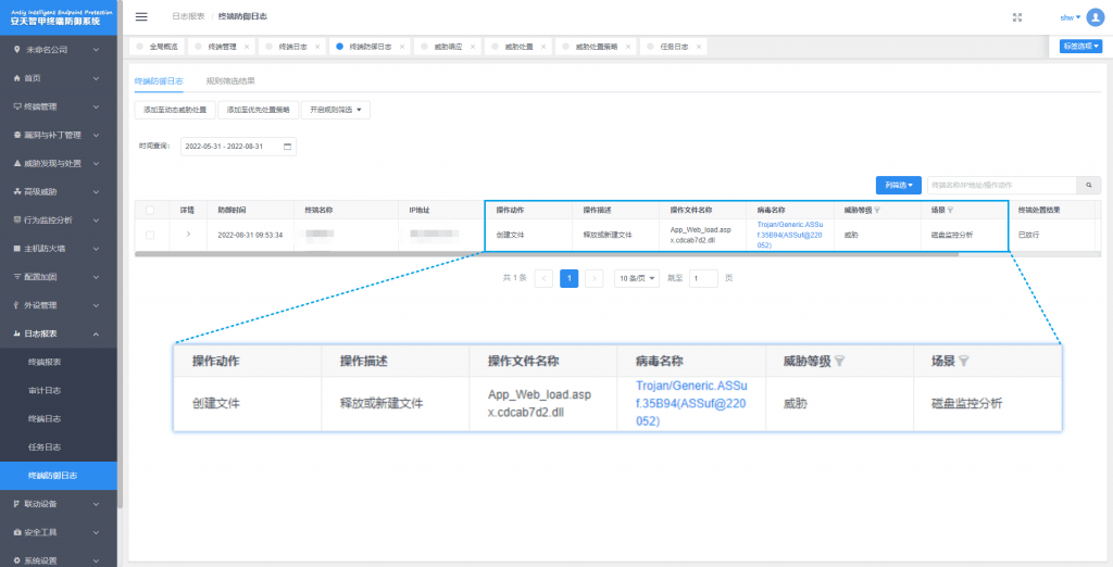 Figure 8-3 Antiy IEP Terminal Defense System – File Release Defense Log