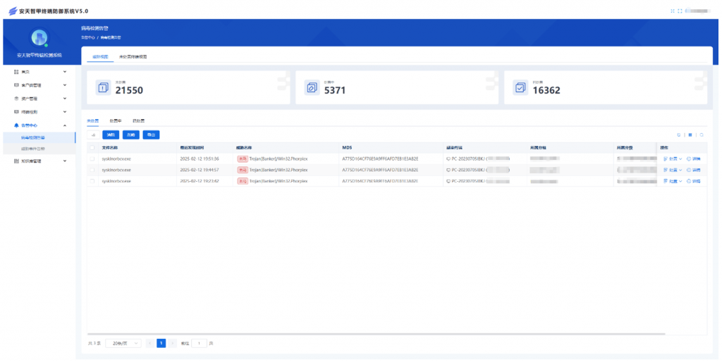 According to the alarm log display of Antiy IEP, a total of 3 Phorpiex botnet malware attacks were checked and killed.
