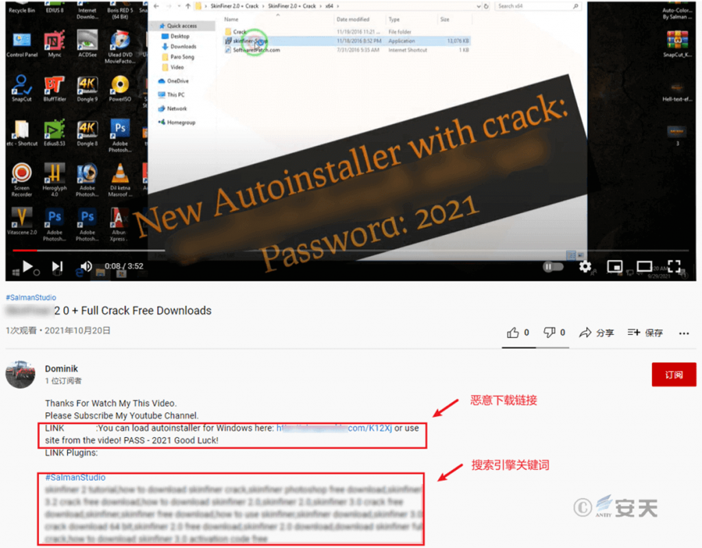 Attackers will also use UGC (User-Generated Content) public websites to spread as normal software, and Antiy has analyzed an attack that spread RedLine through video websites [2]. Such sites allow users to upload their own original content (e.g., videos, posts, etc.) to display to other users. Attackers upload a large number of content containing pirated software, operation tutorials, virtual currency, game cheating and other hot topics as bait to induce users to download and run malware.[2]