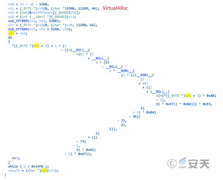 The secret Trojan usually uses a complicated and confusing encryption and decryption algorithm to encrypt and store the attack payload in a resource segment of its own file or a remote server, and only acquires and decrypts the payload at run time, thus avoiding the load landing. Evading the Detection of Security Software. For example, the Vidar secret Trojan horse uses a loader to decrypt the payload in memory, and the decryption algorithm uses multiple shifts and XOR.