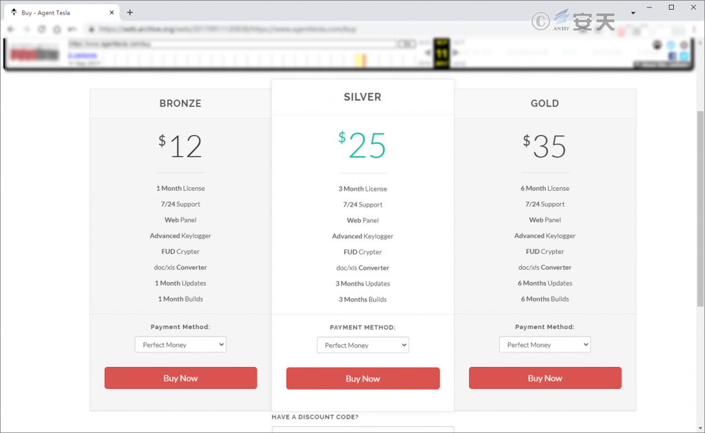 The Agent Tesla Stealth Trojan was originally sold on its official website in 2014, with prices ranging from a few dollars to a few tens of dollars depending on the function users choose. The website claims to be selling “legitimate” keystroke logging tools, but the program contains all kinds of theft functions and uses more anti-analysis means. The website technical staff will also provide support for the illegal use of the software, after which the espionage Trojan is turned into a sale in the hacker forum.