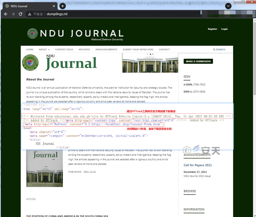 Figure 2-3 A phishing website imitating the journal of Pakistan National Defense University