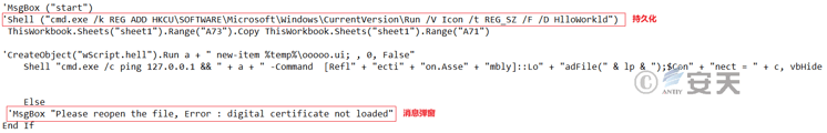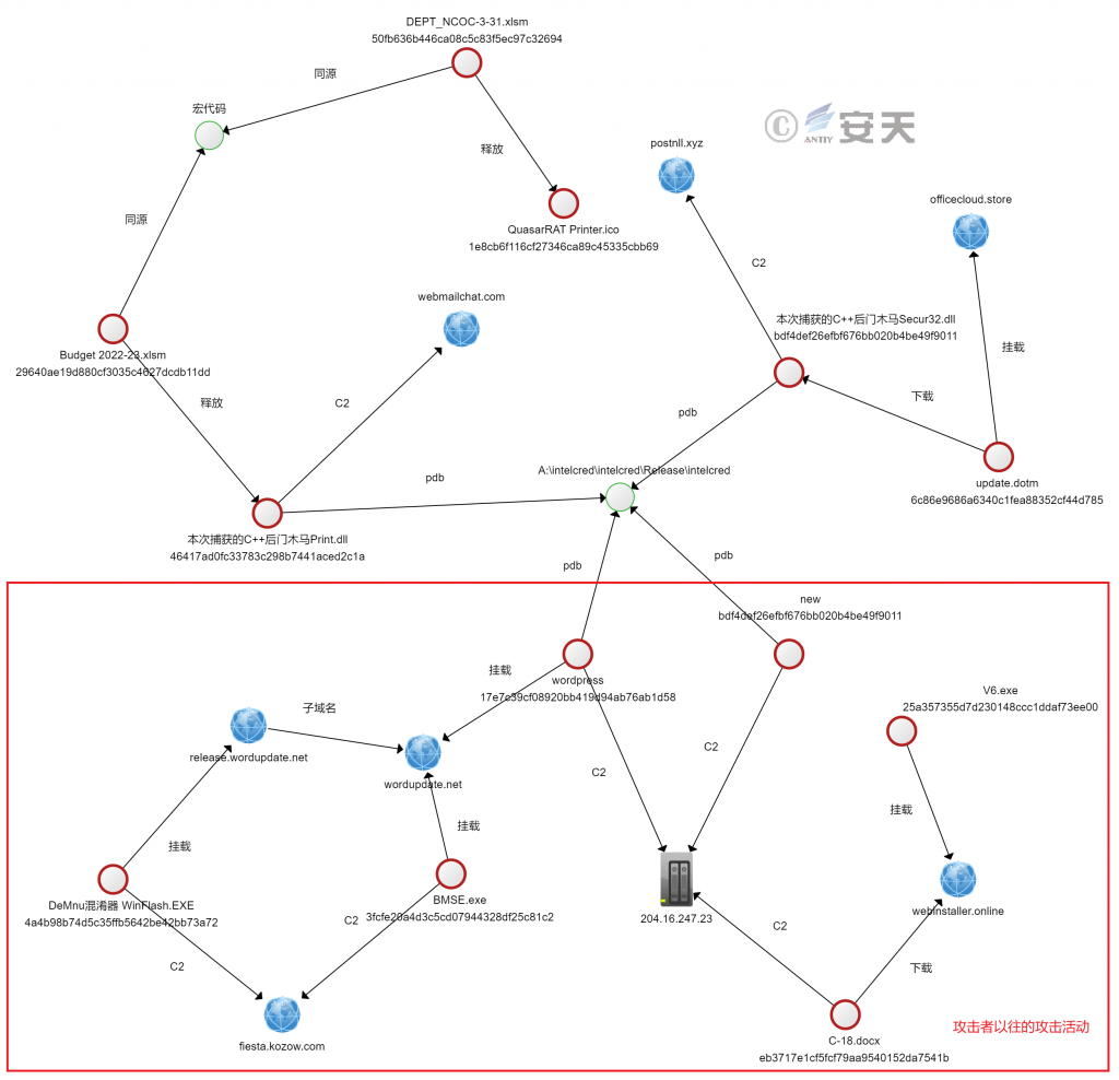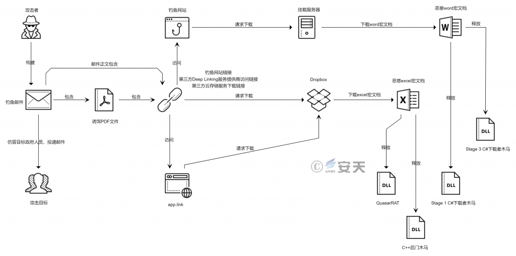 In this attack, that attack mainly used malicious Word macro document and malicious Excel macro documents, and the malicious Word macro documents mainly planted comprehensive secret theft component developed by the attacker into the host computer. The malicious Excel macro document is to implant backdoor components into the host computer (open source Trojan QuararRAT, C + + backdoor Trojan).