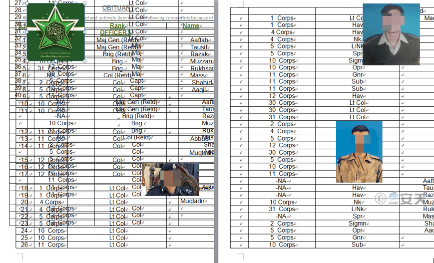 Figure 2-6 Malicious RTF Document of Contents Related to Pakistan Army Victim List