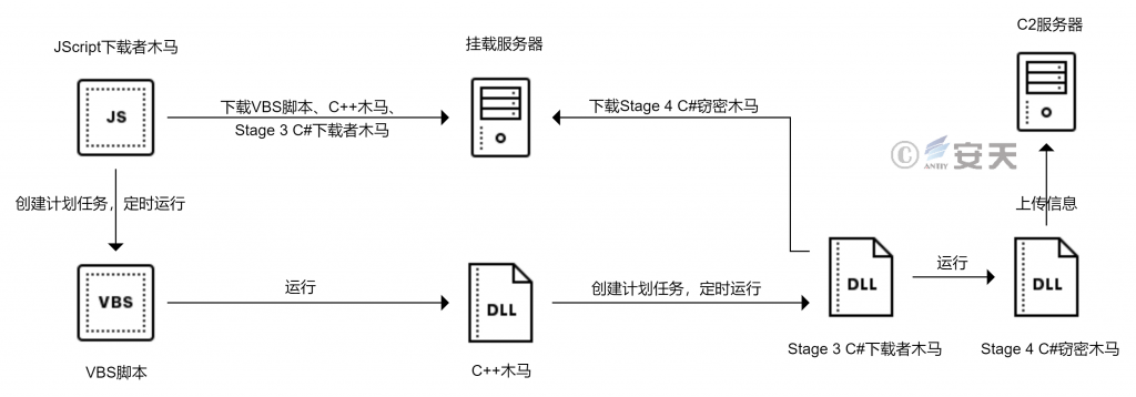 | Weaponry and equipment | C + + backdoor Trojan horse, C # secret Trojan horse, C # download Trojan horse, open source Trojan horse QuararRAT, JScript download Trojan horse |