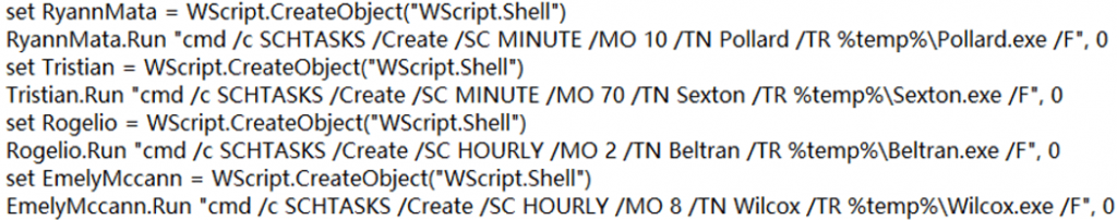 3.To achieve persistence, the Trojan programs Pollard.exe, Sexton.exe, Beltran.exe, and Wilcox.exe are all added to the scheduled tasks, as shown in Figure 3-8.