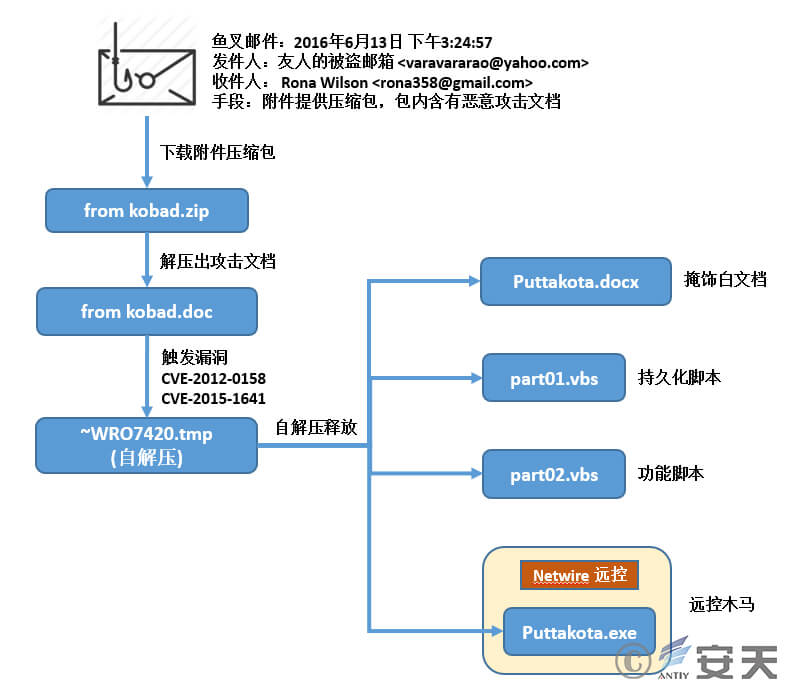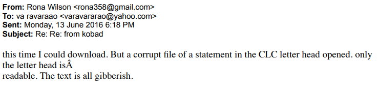 At 3:07 PM on June 13, 2016, prominent Indian activist Rona Wilson received an email from her friend Varavara Rao. The email instructed her to download and view the attached document, titled “another victory.doc”, and stated that it came from Kobad (possibly Kobad Ghandy). Unbeknownst to Rona, Varavara Rao’s email account had been compromised by hackers, and the attached document had been weaponized using vulnerabilities (CVE-2012-0158 and CVE-2015-1642). If opened, it would infect the system with the commercial remote access malware NetWire.