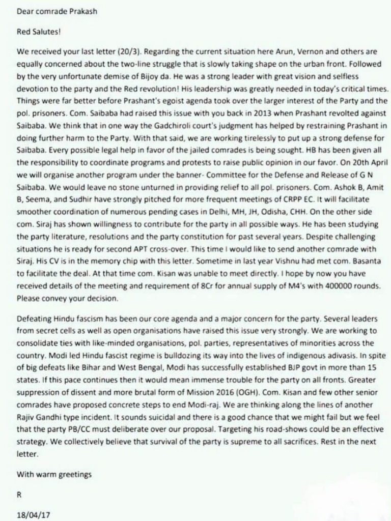 Figure 4 ‑7 The letter is about buying arms and assassinating Prime Minister Modi
