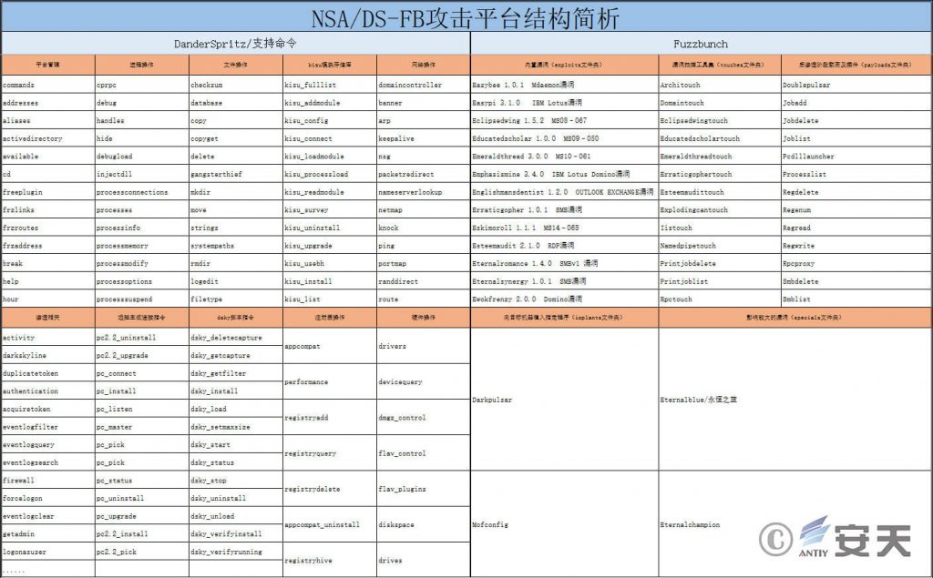 Most of the documents exposed by the “Shadow Broker” are attack plug-ins of the “DanderSpritz” platform. according to the list of released documents, the attack tools and plug-ins are very rich and standardized. Including remote control, vulnerability utilization, backdoor, plug-in, etc. For example, the DanderSpritz _ All _ Find .txt file contains more than 7, 000 lines, of which there are hundreds of plug-ins.