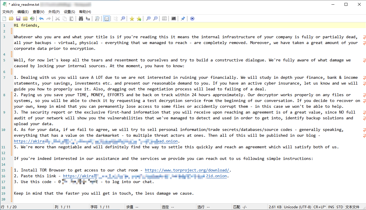 | Typical Encrypted Suffix | .akira |