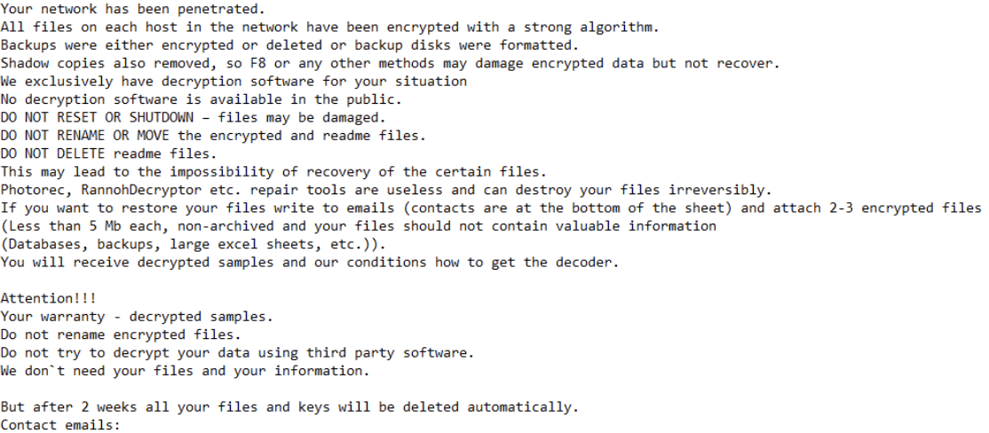 | Operating Methods | RaaS, based on a two-part ransom demand (decrypting files and deleting stolen data) and the sale of data. |