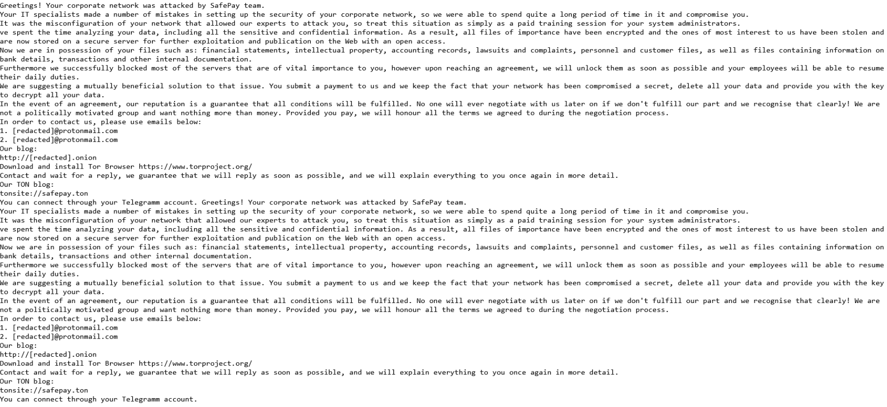 | Typical Encrypted Suffix | .SafePay |