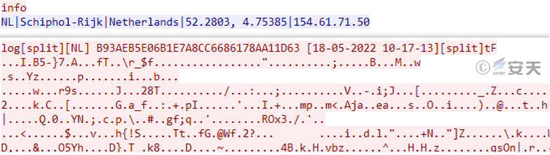 The stealing Trojan encrypts the data and sends it back to the attacker’s server 45.142.122.179:7777.