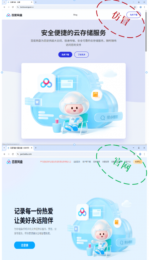Figure 2-2 Malicious Websites Impersonating “Baidu Netdisk”