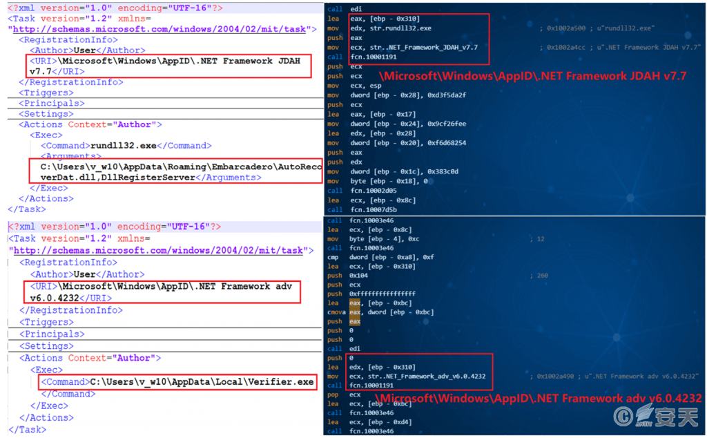 Create two scheduled tasks to log in and execute AutoRecoverDat.dll and Verifier.exe respectively to load shellcode.