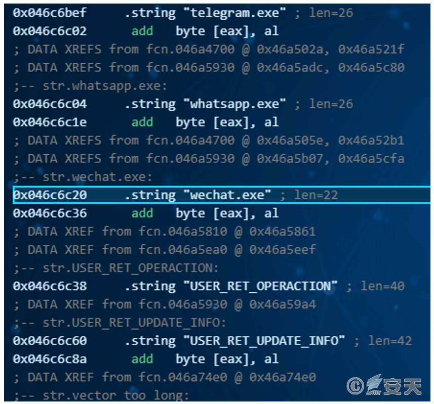 | UserInfoPlugin.dll | The system collects system information and detects current IM applications. If an IM application is found, it uses regsvr32.exe to re-execute AutoRecoverDat.dll. This DLL reads and decrypts GPUCache2.xml to obtain the Code_Shellcode backdoor.dll. |