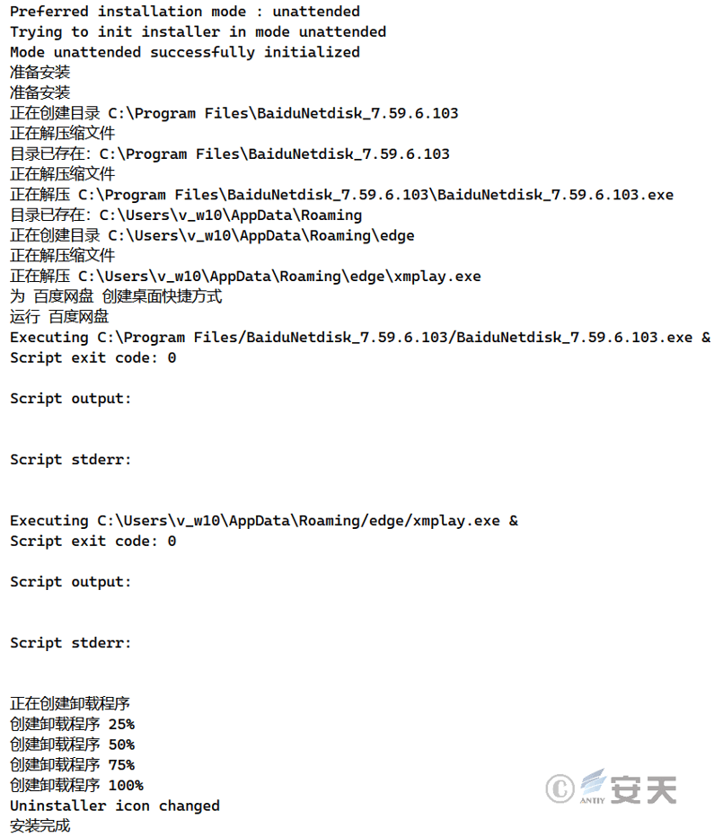 After running, Baidu-2025102902.exe will extract the normal “Baidu Netdisk installation software” installation package to the C:\Program Files directory and execute the installer. It will also create a shortcut on the desktop and release multiple malicious payloads in multiple system installation paths for subsequent selection of attack payloads.